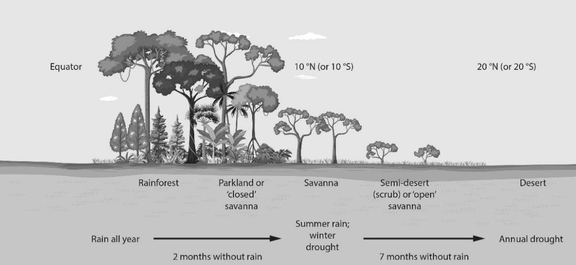 4.2 A diagram showing how vegetation changes from rainforest to desert.