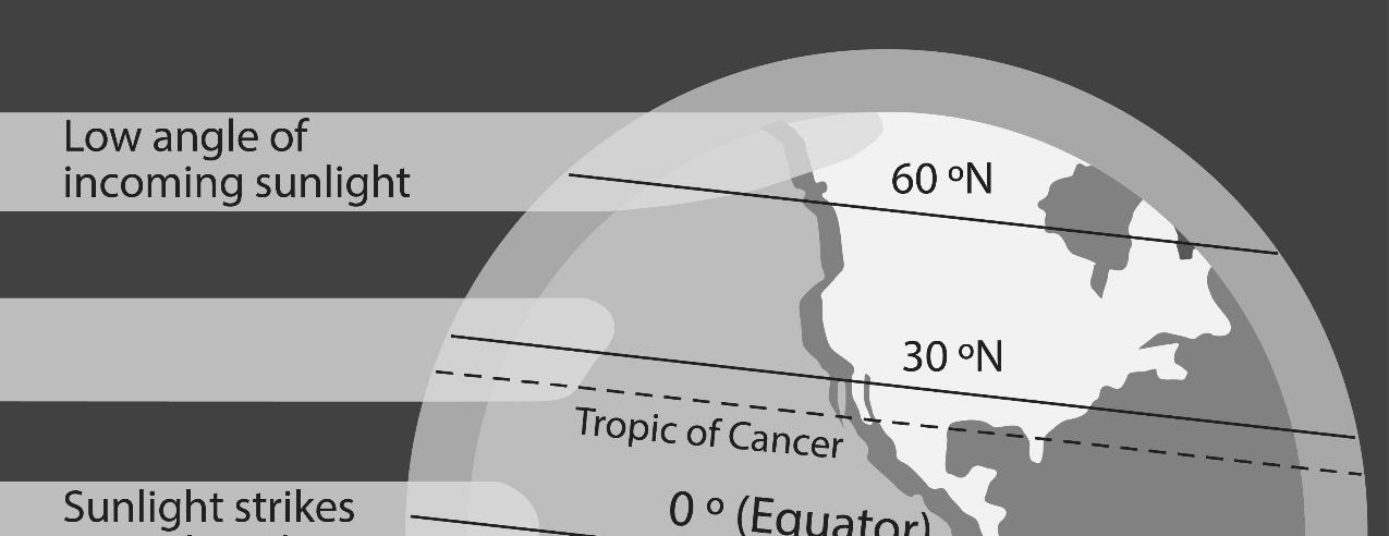 It is important that students understand why the temperature changes as you move away from the equator. It is a common misconception that it is because you are getting further from the Sun. It is actually because the rate of insolation changes. On the equator, the Sun’s energy is more concentrated. However, when it hits the curve of the Earth closer to the poles, the energy is more dispersed. For more detail, see Chapter 1 of this book.