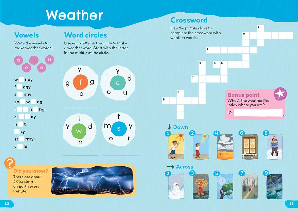 Varied activities like puzzles, word games and fun facts reinforce learning and appeal to all types of learners