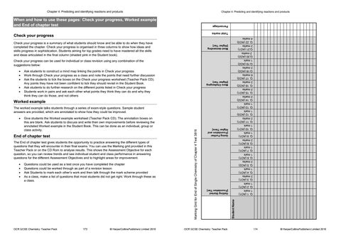 Check your progress is a summary of what students should know and be able to do when they have completed the chapter. Check your progress is organised in three columns to show how ideas and skills progress in sophistication. Students aiming for top grades need to have mastered all the skills and ideas articulated in the final column (shaded pink in the Student book).