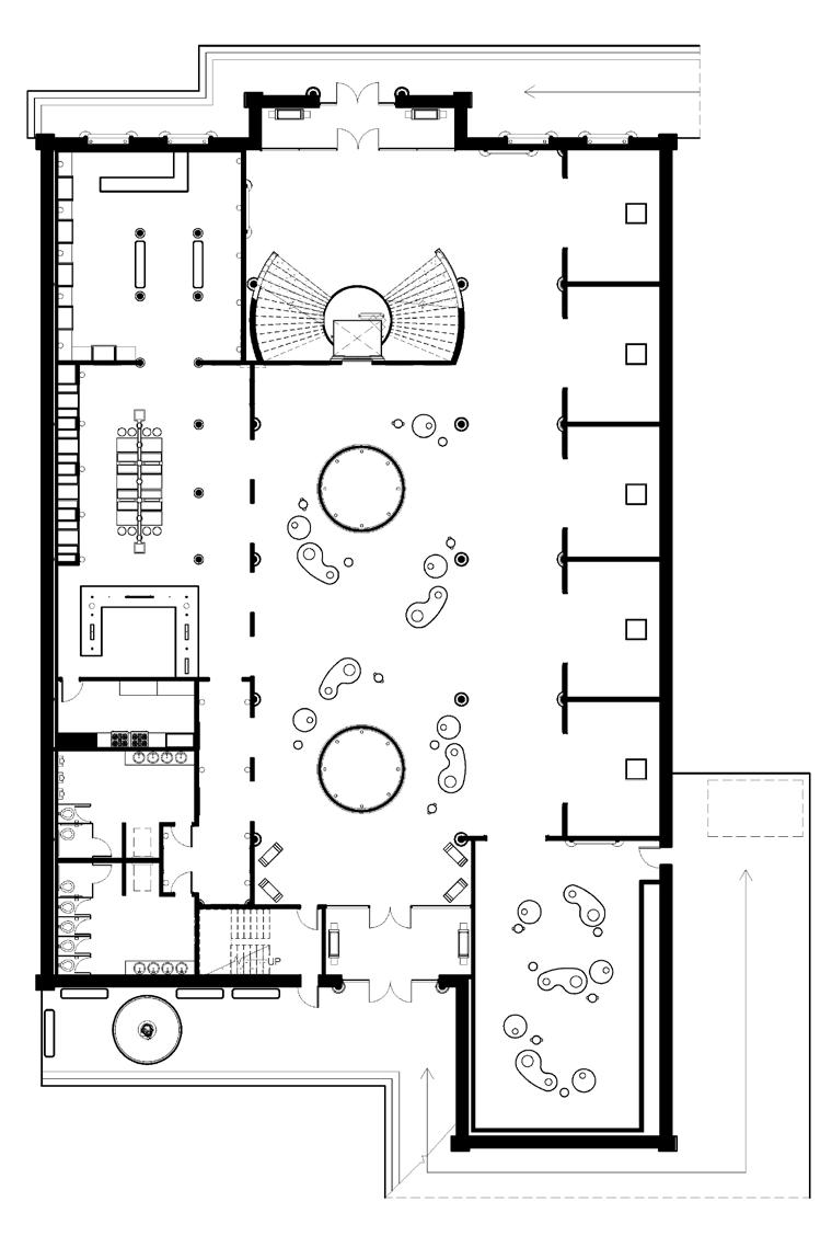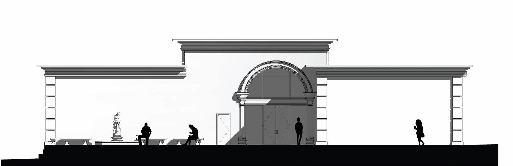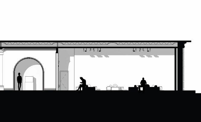 All Drawings line weighted in Revit, edited in Illustrator, and exported to Photoshop for additonal entourage/coloring. Holograms of famous statues throughout history are shown in the exhibit space. The chambers allow a 360 degree viewing of the hologram and as a focal point, the chambers make up a majority of the space. Galleries on the right of the exhibit showcase projections of reliquairies and relics important to italian culture.