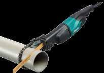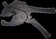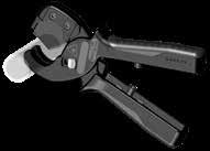 Easily cuts plastic pipe and tubing such as PVC and CPVC, as well as PEX, polyethylene, polybutylene and rubber hose