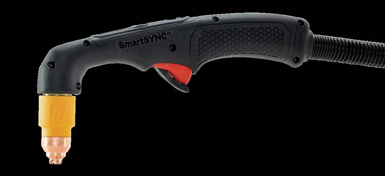 The new Powermax SYNC® plasma cutting and gouging systems will revolutionize the way you work. The new single-piece cartridge consumable is quick and easy to install, eliminates guess work on knowing when to change consumables and simplifies inventory needs. Now you will waste less time and produce more high-quality parts every time. Available in 65, 85, 105 amp systems. Discover more at Hypertherm.com/SYNC.