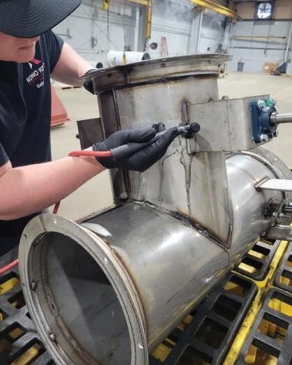 Two and a half years ago, Kono Kogs took a signi cant step by vertically integrating and adding fabrication capabilities. This move allowed them to have better control over quality and meet customer lead times more effectively. One of the main components of their oxidiser systems are Diverter Tee Dampers, which they began to produce in-house. Some applications required the use of stainless-steel materials due to the corrosive nature of the processes. Initially, these dampers were passivated manually using a clean stainless steel wire brush or a hazardous pickling paste.