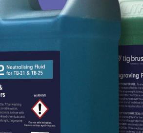 Before using any of the TIG Brush neutralising uids, rinse off the weld cleaning uid thoroughly with clean water. Then apply the appropriate neutralising uid to remove any of the residual acidity.