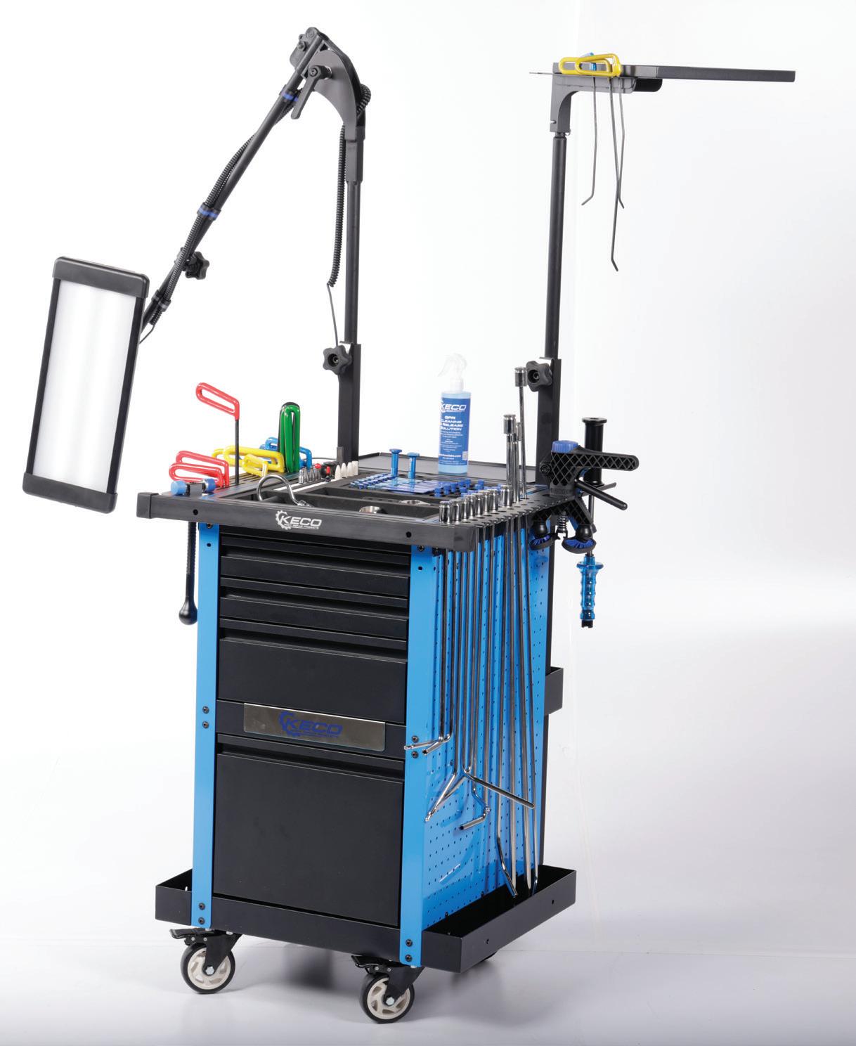 I also appreciate how customizable the platform is. Every shop has its own rhythm, and being able to configure the cart without tools means it can evolve with the workflow. The reinforced construction and perimeter holders show that Keco understands real collision-shop conditions — not just ideal ones.