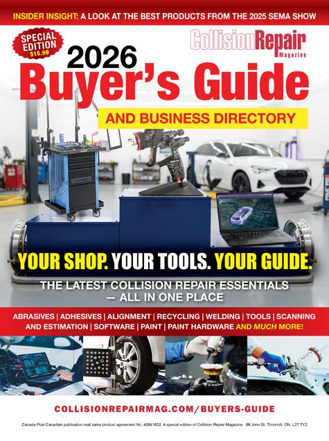 elcome to the 2026 Collision Repair Buyer’s Guide — your essential guide through a rapidly evolving industry. Over the past year, visits to shops, training centres and global trade events have shown one thing clearly: collision repair is changing fast and the pace of innovation is only accelerating. Nowhere was that more evident than at the 2025 SEMA Show, where the future of repair was on full display. Walking the halls, speaking with suppliers and watching demonstrations offered a clear view of the tools and techniques that will soon become standard in shops across the country.