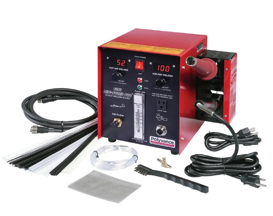 The Polyvance Mini-Fuzer Pro Hot Air Plastic Welder is a versatile, USmade solution for professionals and advanced DIYers who need stronger, faster plastic repairs without the cost of a nitrogen system. Combining hot-air and airless welding in one unit, it handles virtually any plastic type with precision and control. With upgraded performance, enhanced durability, and professional features, the Mini-Fuzer Pro delivers reliable, repeatable results at an accessible price — an ideal step up for shops expanding their plastic repair capabilities.