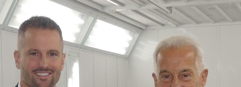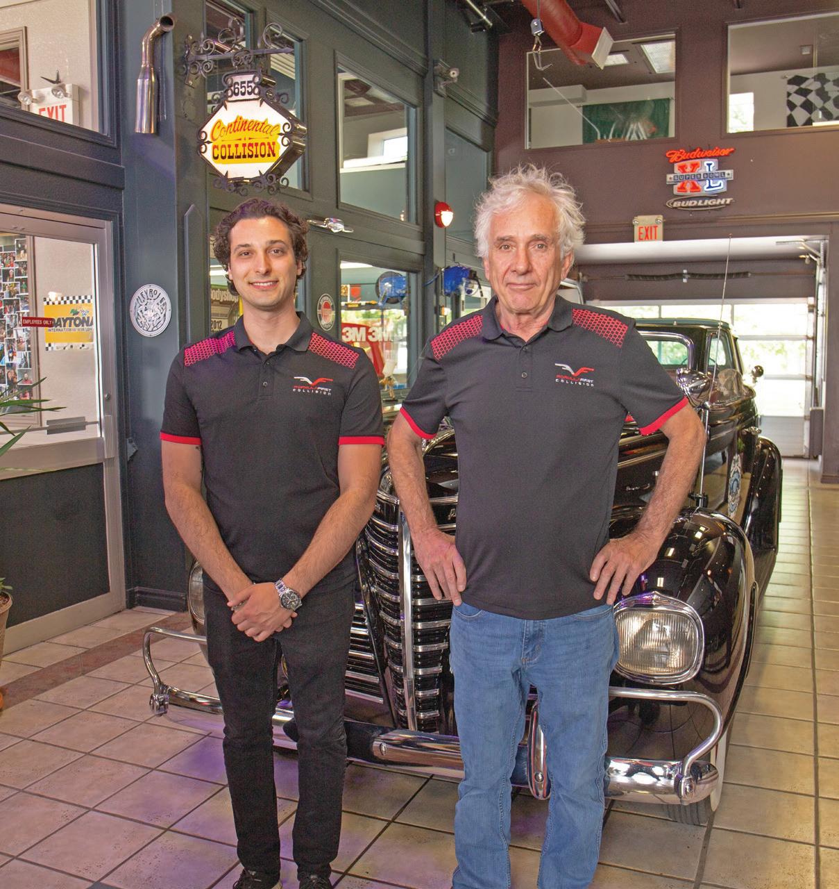 Johnny D’Ambrosio, third-generation owner of Fix Auto St. Catharines, Welland and Niagaraon-the- Lake, stands with his dad, John, at the shop his grandfather founded in 1976.