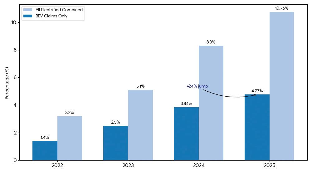 The findings point to longer vehicle life cycles—and more advanced repairs—across the EV segment.