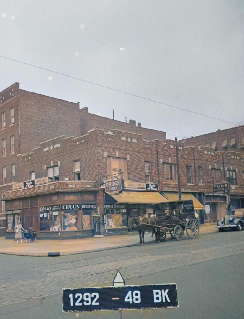 The building’s first owner was a man by the name of Aaron Katz, and its first recorded tenant was Crown Pharmacy, owned by Julius J. Smith. By 1929, the pharmacy had become part of the Davis Drug Store chain, offering quick service delivery and ordering over the phone. The pharmacist at the time was Max Frank Goldman, who lived on Lincoln Place. The one-story brick protruding addition was originally a soda fountain store, which was common in drugstores in those