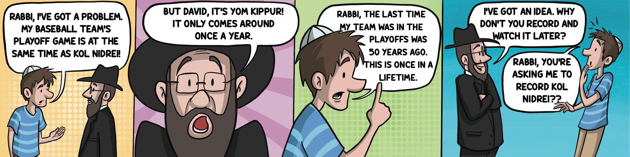 Because that’s how it works: When someone new comes, someone who’s been there for a while gets to leave. That’s why the last people who come end up staying forever – because nobody comes to relieve them. At least if your wife is home or you have some other relatives there, they can start cleaning as you sit there, so the last person can get the hint. If no one’s there, or all your helpful relatives went to sleep so it’s just you and him, that guy is not leaving. Until your talmidim come in and say it’s time for the morning Shema. So it’s good to get some talmidim. Or to hire some ahead of time. If you don’t, you will not get any sleep, which is good practice for fatherhood.