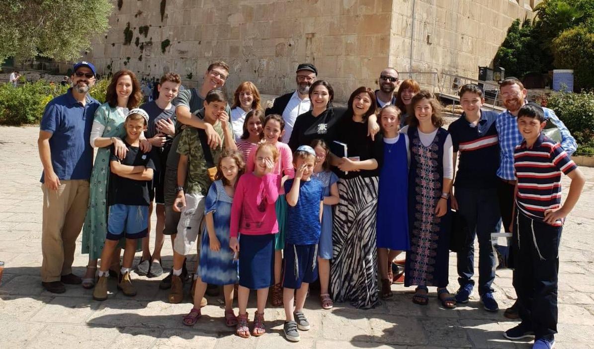 Rami Davidian, a farmer from Moshav Patish, rejoices with Chabad Shluchim during JLI’s Land & Spirit Israel trip, April 2024