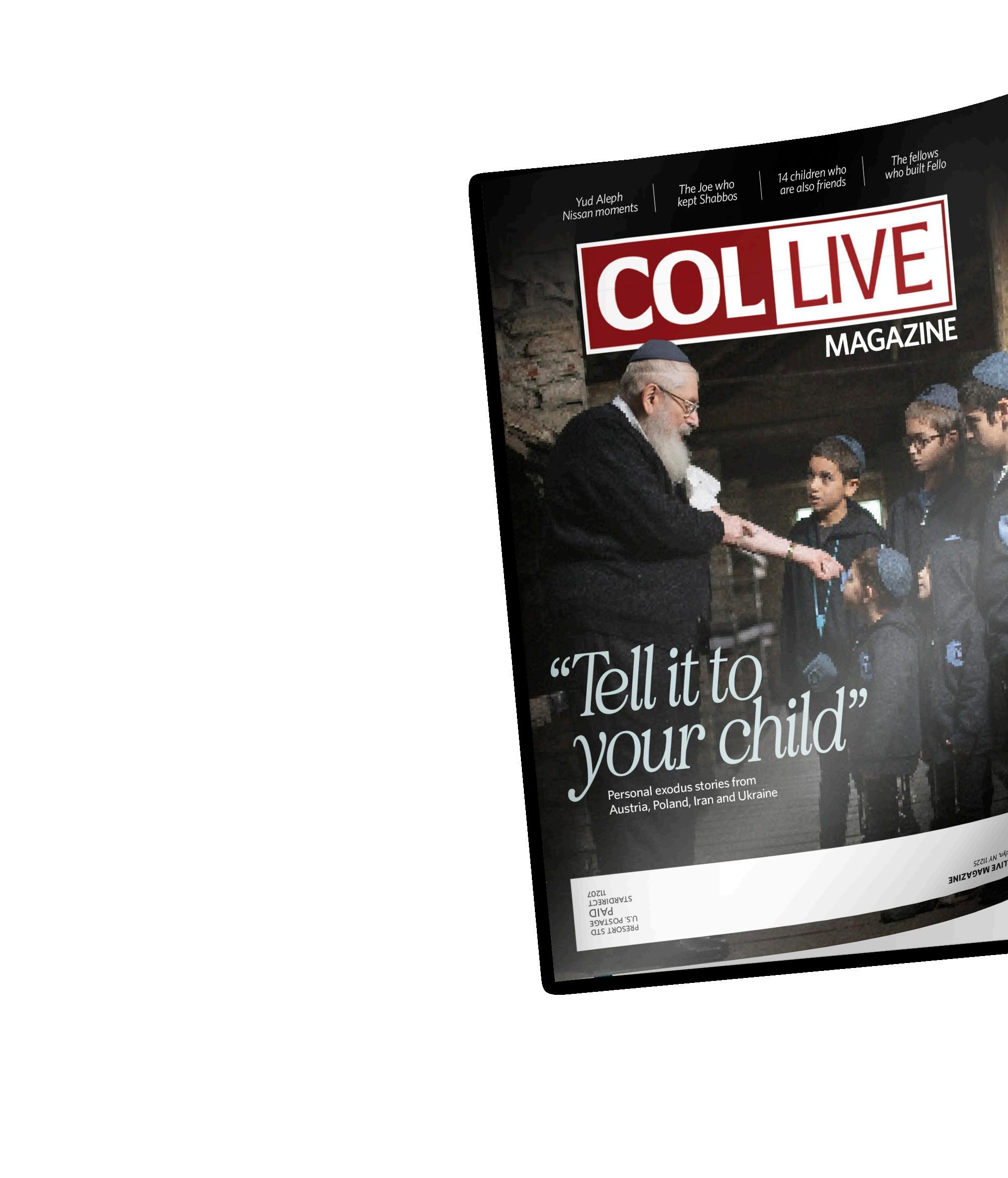 COLlive Magazine is published in print and online periodically by the COLlive Media Group Inc. and is distributed across the United States. COLlive does not endorse any products or services reported about or advertised in COLlive Magazine unless specifically noted. The acceptance of advertising in COLlive Magazine does not constitute a recommendation, approval, or other representation of the quality of products or services or the credibility of any claims made by advertisers, including, but not limited to, the kashrus or advertised food products. The use of any products or services advertised in COLlive Magazine is solely at the user’s risk and COLlive accepts no responsibility or liability in connection therewith.