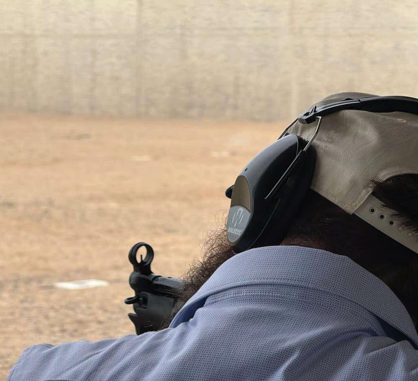 A Chabad Shliach practices at a shooting range in the United States, Teves 5786. Photographed by Ronen More.