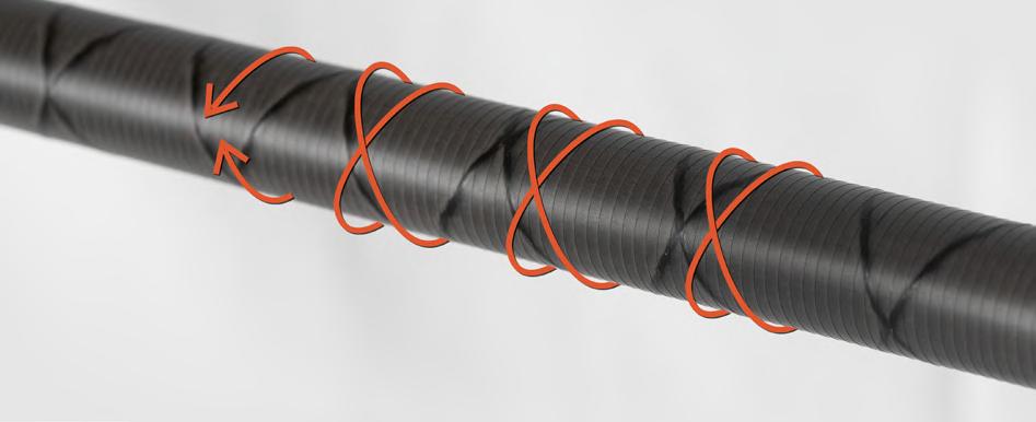 TECH TUBE CARBON, un material con características inimaginables. La dificultad de aplicar este material tan fino al mandril de acero no nos hizo desistir y el resultado ha sido espectacular. Hemos hecho realidad el sueño de todo pescador: una caña más ligera, más resistente a la rotura y al mismo tiempo más rígida. Con el Tech tube Carbon podemos reducir el peso de las secciones hasta un 15 % en comparación con las actuales fibras de carbono, aumentar la rigidez entre un 5 y un 10 % y la fiabilidad otro 10 %.