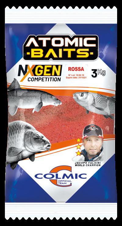 Gli ingredienti e le caratteristiche di questa pastura, sono esattamente gli stessi della Bianca nello stesso formato, salvo il colore rosso che è dato dall’utilizzo di pane tostato di prima scelta, additivato con prodotti ed essenze naturali. Questa tonalità, si rivela micidiale in alcuni ambiti di pesca e consente anche all’amatore, che si cimenta per diletto e non per agonismo, di usare lo sfarinato come esca, bagnandolo e lavorandolo nella maniera appropriata.