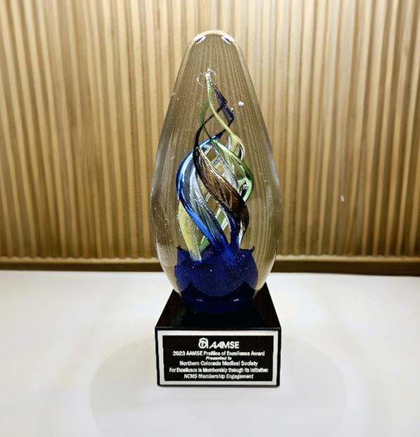 The Northern Colorado Medical Society was awarded an AAMSE 2023 Profiles in Excellence Award for Membership Engagement . NCMS Executive Director Crystal Goodman attended the AAMSE Annual Meeting in Phoenix July 19-21 and accepted the award. NCMS was recognized for their partnerships with community organizations, local events, their stethoSCOPE podcast, e-newsletter