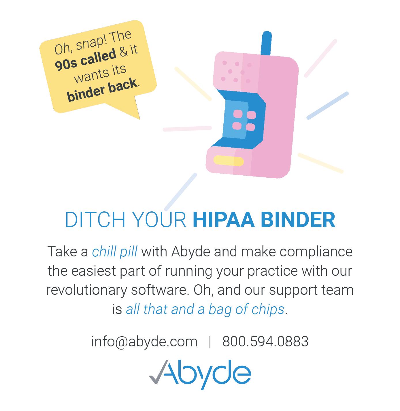 Compliance doesn’t need to be a stressful rehearsal for things to go wrong. It's a practical endeavor that protects both patients and employees alike. At Abyde, we strive for a harmonious dance where patient privacy and workplace safety are the show’s stars. Our revolutionary software bundles HIPAA and OSHA compliance for health care, making the balancing act of compliance easy for practices.