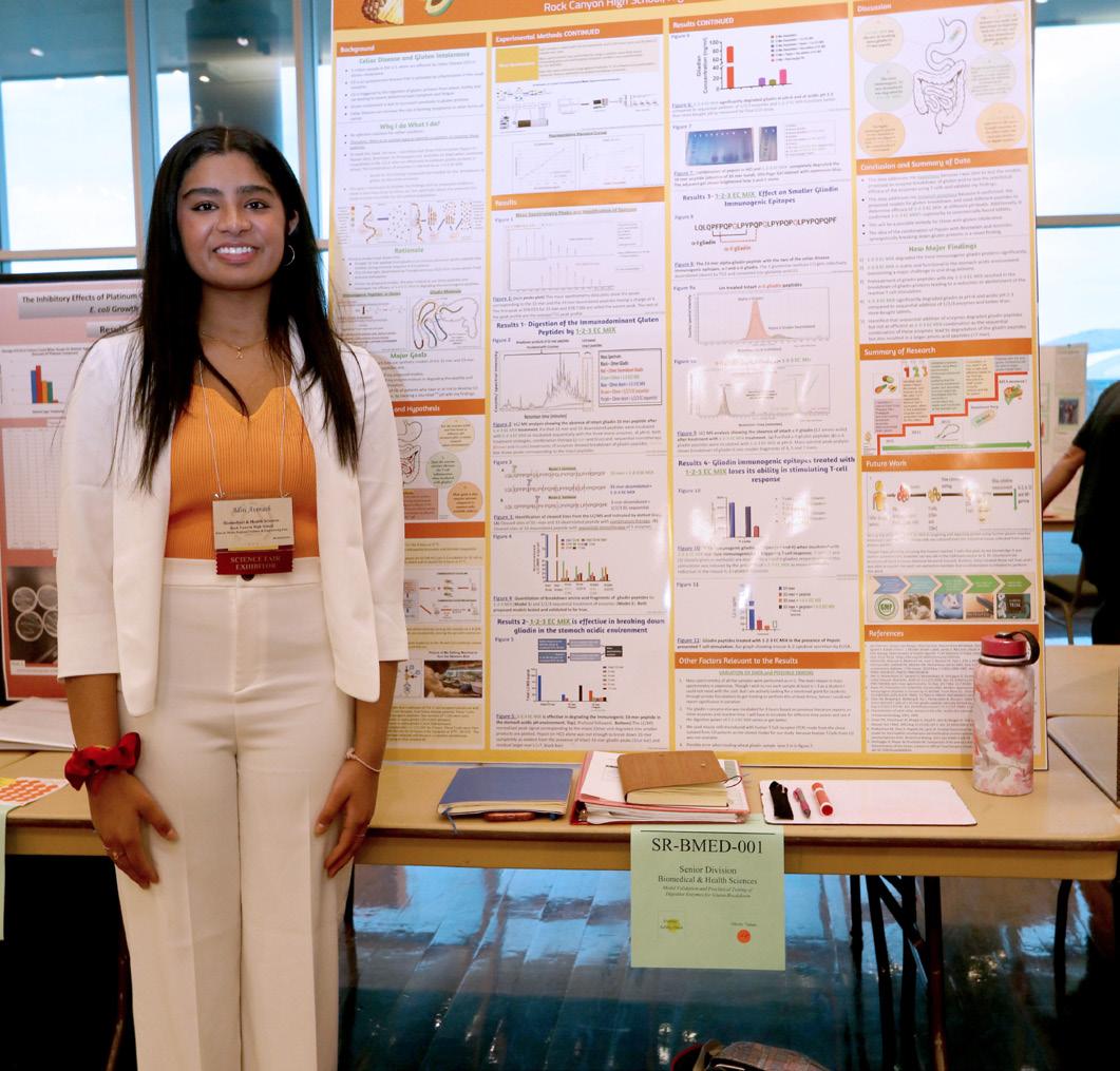 Bottom: Aditi Avinash was awarded CMS’s Award of Excellence in the senior category for her project, “Model validation and preclinical testing of digestive enzymes for gluten breakdown.”