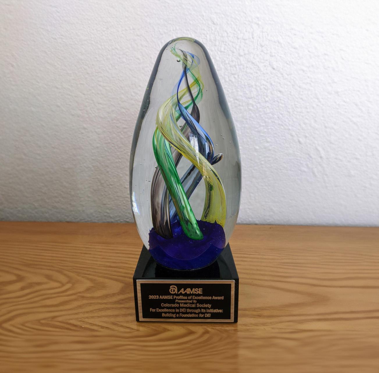 The Colorado Medical Society was awarded an AAMSE 2023 Profiles in Excellence Award for Excellence in Diversity, Equity and Inclusion . BCMS Executive Director Cecilia Comerford accepted the award on behalf of CMS at the AAMSE Annual Meeting. CMS was