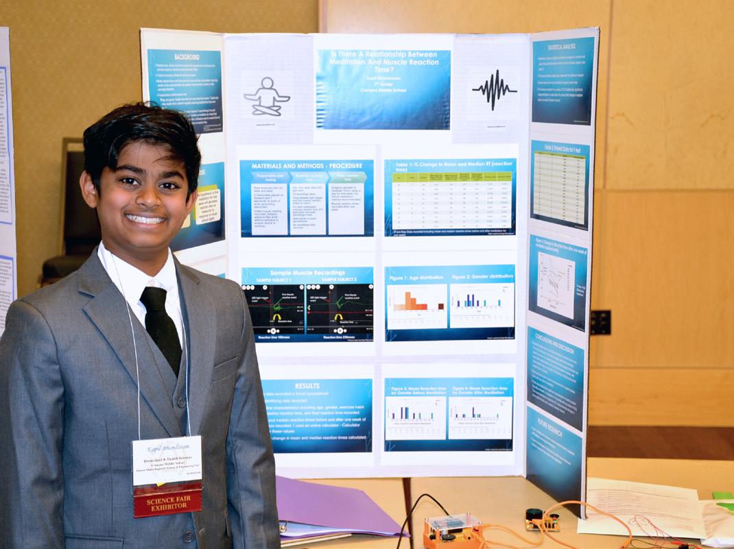 Top: Kapil Bhandaram was awarded CMS’s Award of Excellence in the junior category for his project, “Is there a relationship between meditation and muscle reaction time?”