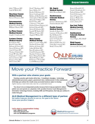 Karen A Randall, DO Derek G Rodeback, DO Richard Salazar, MD Noah N Settergren, DO Ann A Turner, DO Jessica L Walsh, DO Kayleigh A Zerr, DO Lexie L Zuver, DO San Luis Valley Medical Society Mikaila H Pence, MD Southeastern Colorado Medical Society Gino F Figlio, MD, FAAP Weld County Medical Society Giovanna M Garcia, MD