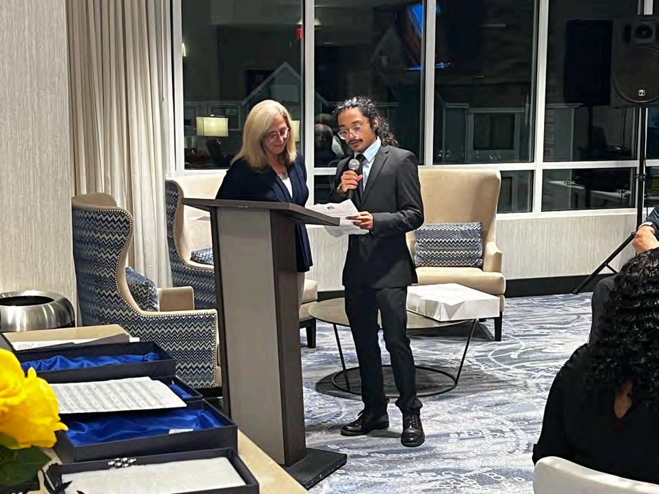 This year, the winner of this prestigious award was Colonial Ch Secretary and MS Liason, Jerrod Harris. Numerous nominations ca reach out to Joesph Singleton's friend, Rene' Aguilara who was the Chapter staff placed him with Jerrod at the awards dinner s other. Rene' was prepared for the event with a speech about Jo the most memerable award of the evening on October 11th, 2024.