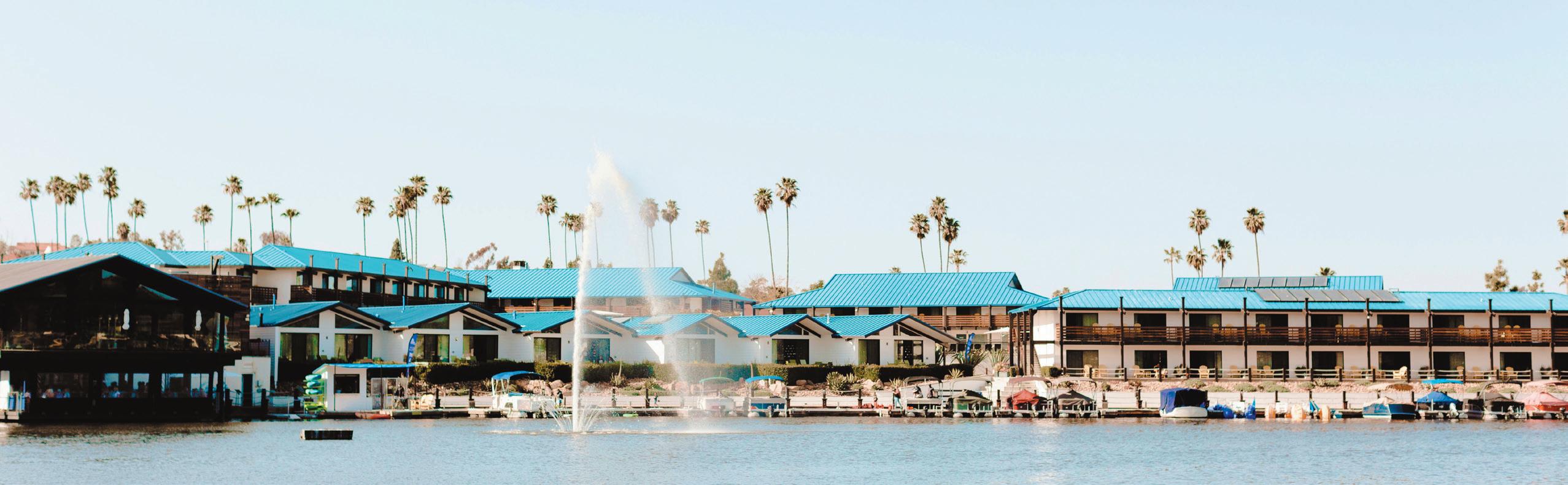 Lake San Marcos, neatly tucked away in the north end of San Diego County, transports the visitor far from crowded ocean beaches and the frenetic vibe of big city living to a calm, yet not too isolated setting. The Lakehouse Hotel and Resort, perched right on the lake, is the physical embodiment of an American summer. On the grounds, there is eight pickleball courts, three tennis courts, an expansive pool deck with two saltwater pools, and whirlpool spas. Its own marina includes all you need for paddle boarding, sunset cruises, group outings, dock leases, boat rentals, kayaks, fishing gear, and other essentials. If you own a boat and can drive it down with you, you can book a space on the marina for a fee to soak up the sun right on Lake San Marcos.