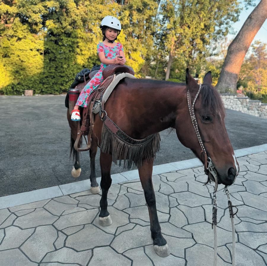 I've lived in Hidden Hills my whole life, surrounded by horses, donkeys, dogs, and cats. Some of my earliest memories were of my mom teaching me to ride my pony, Bowie, in my backyard or trail riding him throughout the days in my teenage years. My little white pony gave me the "horse bug" that never left. Throughout high school, I had the opportunity to compete on many national stages in the equestrian sport, eventually leading me to the University of California, Davis, where I now compete on their D1 equestrian team. Horses have brought me so much joy throughout my life, and I love to see others fall in love—especially with the little moments spent with them. Bowie still lives happily in my backyard and continues to teach kids about the joy of horses.