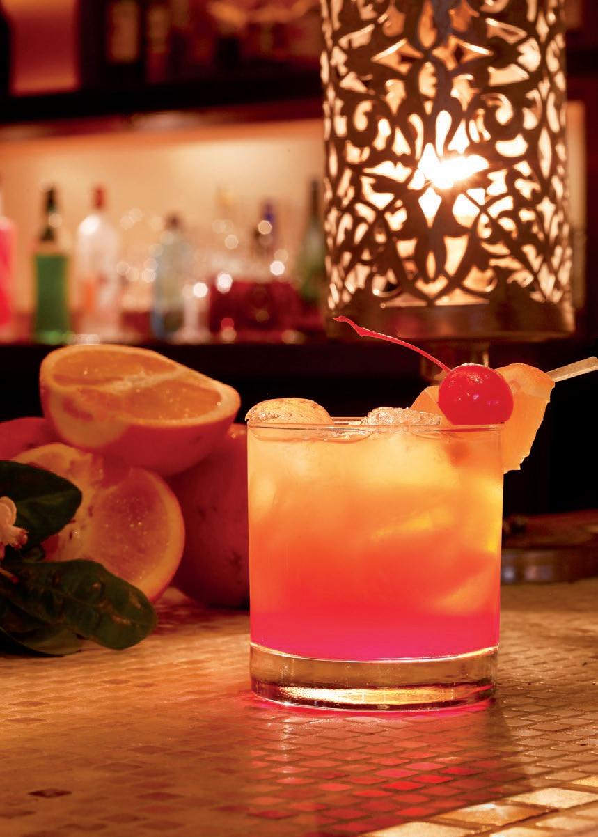 RIGHT: A SIGNATURE COCKTAIL MADE TO PERFECTION AT MORGAN’S IN THE DESERT. VEUVE CLICQUOT’S APRÈS SWIM LOUNGE READY AND WAITING TO SERVE GUESTS.