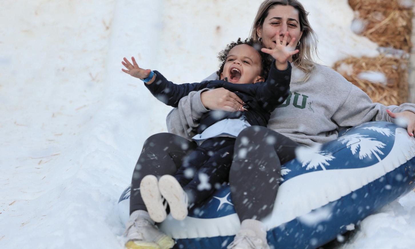 From engaging games to playing in the snow, the festivities offered something for everyone. The human snow globe, bounce house, and ice skating kept spirits high and energy levels soaring throughout the event. The delightful addition of kid and adult snow cones added a festive treat for all to enjoy!