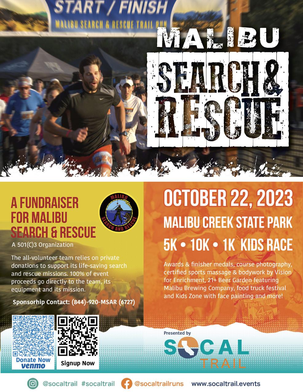 The Malibu Search & Rescue Team cordially invites participants and sponsors to their Annual Fundraising Trail Race Event at Malibu Creek State Park on Sunday, October 22. Attendees can hike, run, or race in 5k or 10k distances, with a special 1k Run/Walk available for children. The event seeks to generate funds to aid the team’s life-saving missions, as it primarily relies on private donations for equipment and supplies. The day will feature awards, food trucks, a Beer Garden by Malibu Brewing Company, and various booths. Donations, vendor participation, and volunteers are highly encouraged, with opportunities to contribute items for drawing and products. All proceeds will directly benefit the team’s efforts. Those wishing to register can do so at this link, and for more information or to volunteer, please contact (844) 920-MSAR (6727). Sponsorship inquiries can be directed to Neal Thornhill at (818) 730-1875 or R22@malibusar. org. The Malibu Search & Rescue Team has been a dedicated all-volunteer organization since its foundation in 1977, serving various areas around the Santa Monica Mountains.