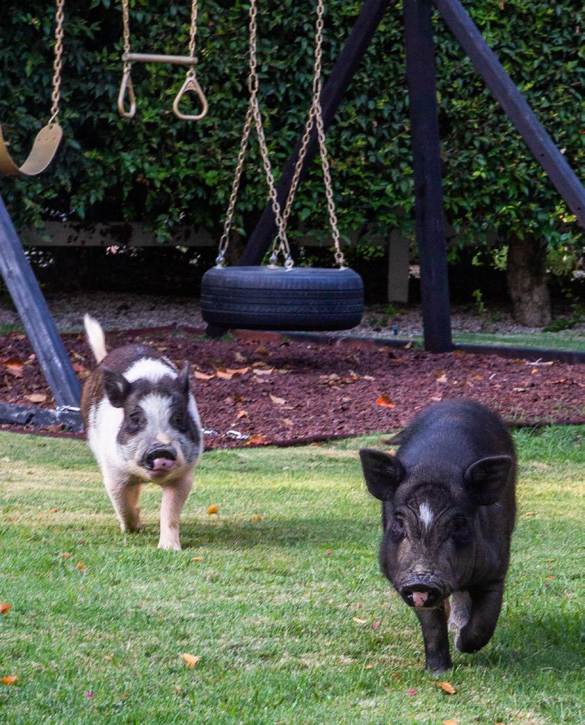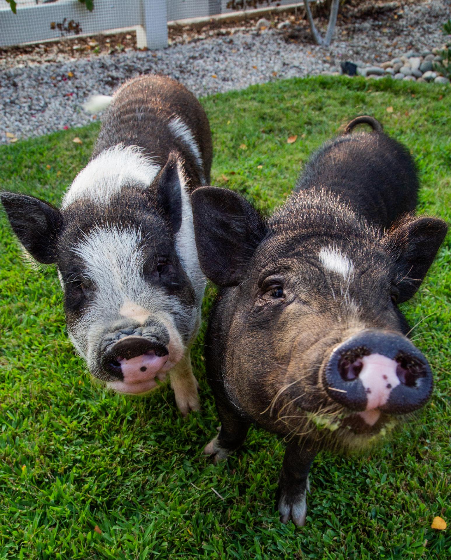 MMeet Tank and Babe! They are 9 month old mini potbelly pigs who were given to us by our neighbors. They know tricks like, sit, paw (hoof high five) and sit pretty. They love swimming in their kiddie pool and running around the grass. We first met them, Tank, Babe, and his pig family, when they moved out of their old