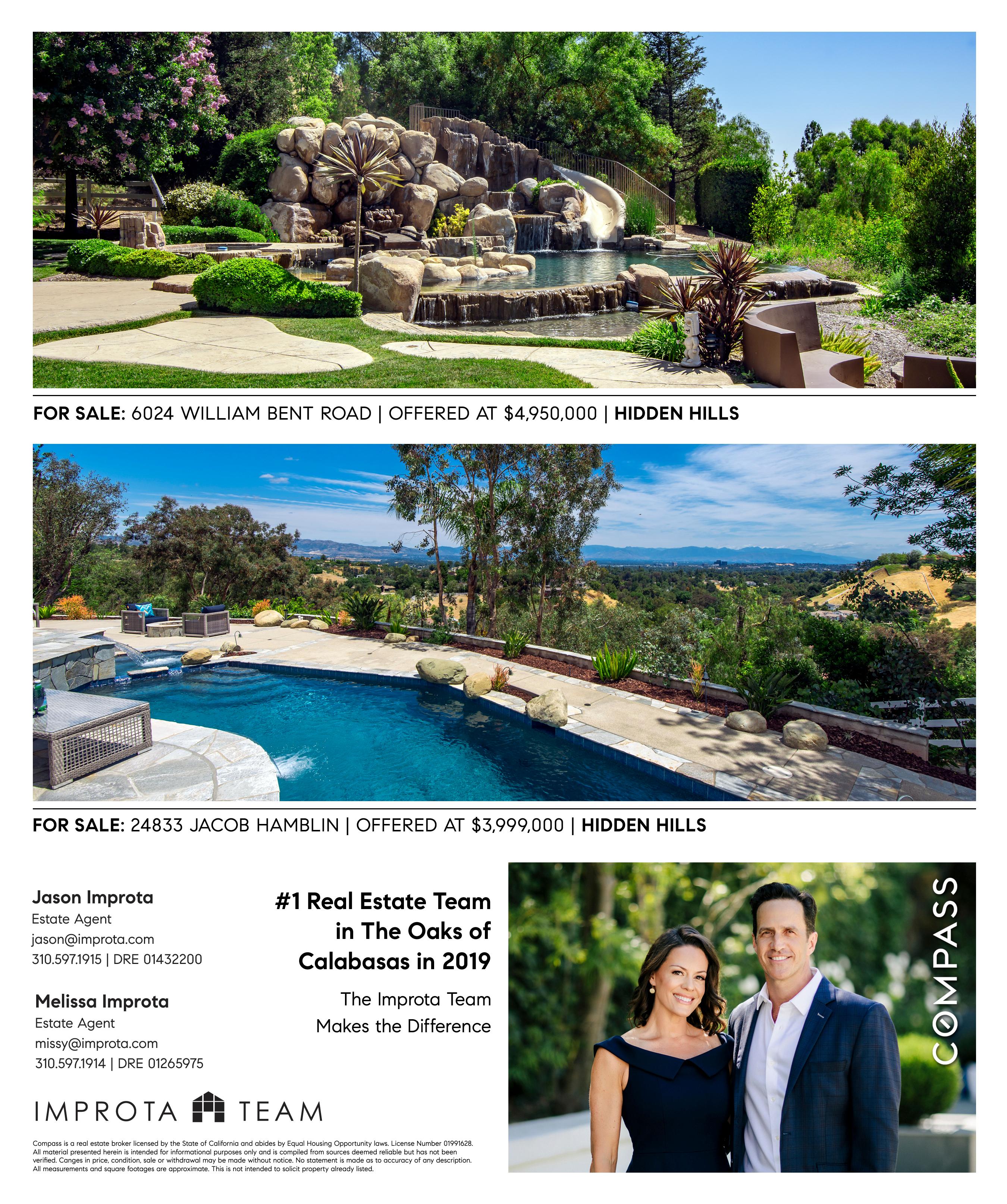 , | $46,000,000 24055 HIDDEN RIDGE ROAD, HIDDEN HILLS | $22,750,000 TOMER + ISIDORA FRIDMAN EXCLUSIVE REPRESENTATION ISIDORA FRIDMAN 818.402.4442 isidora.fridman@compass.com TOMER FRIDMAN 310.926.3777 tomer.fridman@compass.com Tomer & Isidora Fridman Exclusive Representation 25211 JIM BRIDGER ROAD, HIDDEN HILLS | $14,350,000