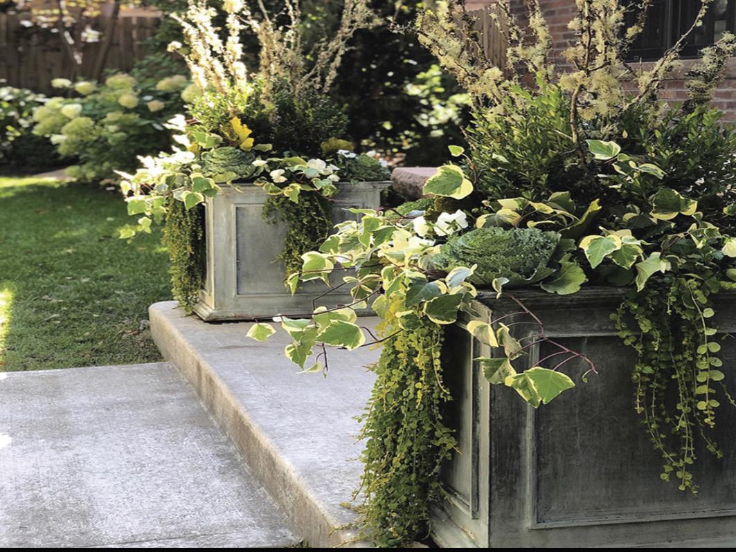3rd Redesign Garden Pots - Michelle’s favorite garden pot combo is either two large pots on each side of the door or stacking 3 pots varying in sizes large, medium or small on each side of the doorway. Both choices will add beautiful symmetry and frame your welcoming portal. When choosing what to put in your garden pots, according to Michelle, “Color evokes Emotion”. She suggests one of two winning color combos. Lush shades of green and white for a prosperous organic vibe or what she refers to as “The SoCal Feels”. A combination of purples, pinks & white for a romantic and whimsical essence. After you know your color combo start planting with “Tall Thrillers” to give your pot height and drama. Next add “Filler”, a medium sized plant, for fullness. Lastly, and Michelle’s favorite, place a “Spiller” to texturize & cascade over your perfect pots. Michelle states “Layering plants thoughtfully will elevate the look of your garden pots”.