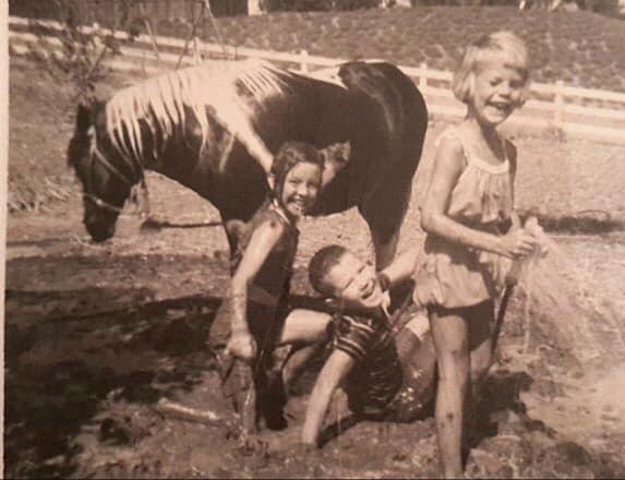 in the rural community. During barefoot summers, Jill Hartman remembers her mom making her feed her horses without shoes during the summer, “trampling through the mud so that all we had to do was hose off our feet to come back into the house and not make ‘mud tracks!’” After the chores were done, then the kids could spend the whole rest of their day in open-aired freedom. Such as climbing to the top of dirt hills and racing down on flattened cardboard boxes or saddling up and riding on horseback into the city. As Betsy Selle fondly recalls, “In the early 60’s my friends and I rode our horses through a tunnel under the 101 freeway to buy penny candy at the Calabasas Market and check out the comic books at Kramer’s Market.”