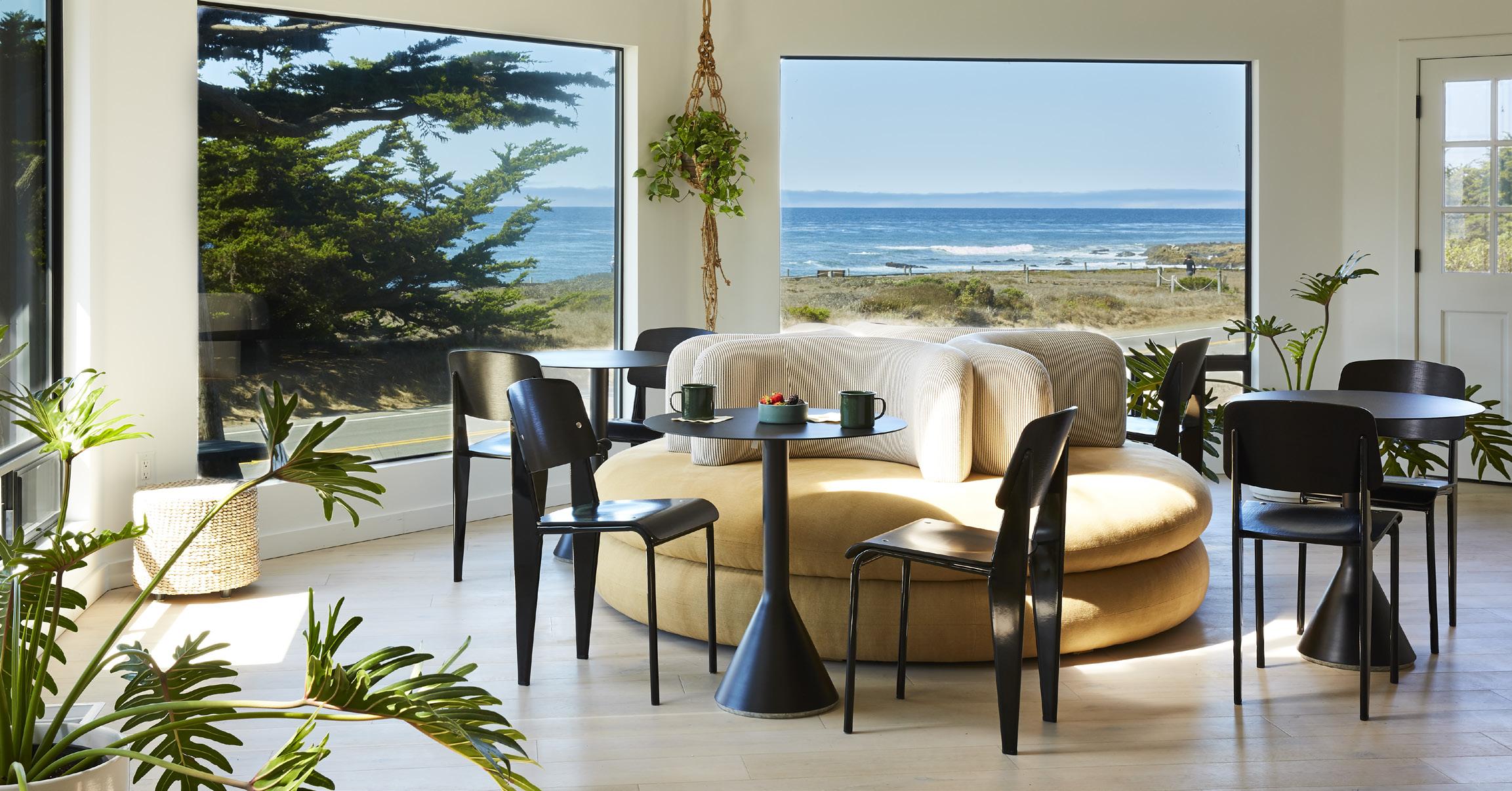 Top Opposite: A variety of seating in the main lobby, complete with a view of the coast and hiking trails,