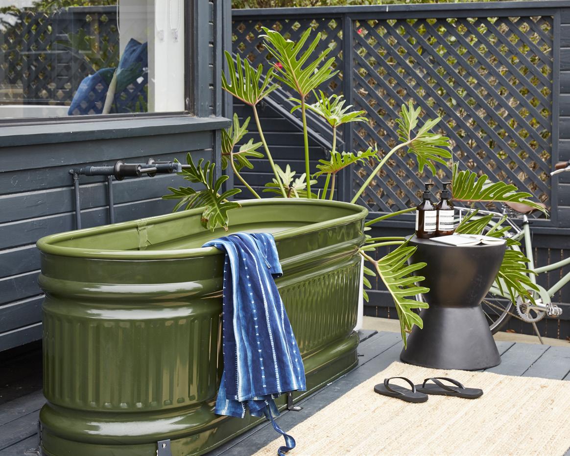 Bottom Right: The Ocean View King Suite is complete with a private patio that includes a unique, outdoor tub.
