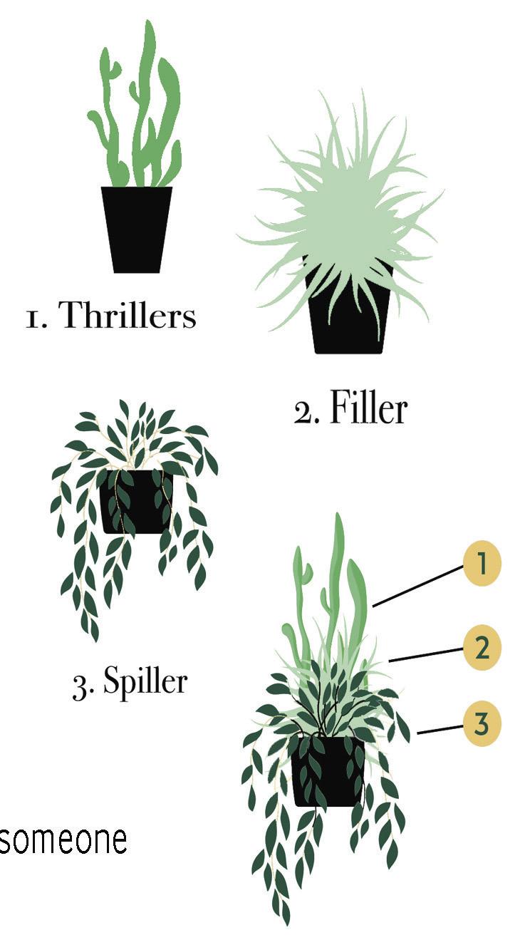 3rd Redesign Garden Pots - Michelle’s favorite garden pot combo is either two large pots on each side of the door or stacking 3 pots varying in sizes large, medium or small on each side of the doorway. Both choices will add beautiful symmetry and frame your welcoming portal. When choosing what to put in your garden pots, according to Michelle, “Color evokes Emotion”. She suggests one of two winning color combos. Lush shades of green and white for a prosperous organic vibe or what she refers to as “The SoCal Feels”. A combination of purples, pinks & white for a romantic and whimsical essence. After you know your color combo start planting with “Tall Thrillers” to give your pot height and drama. Next add “Filler”, a medium sized plant, for fullness. Lastly, and Michelle’s favorite, place a “Spiller” to texturize & cascade over your perfect pots. Michelle states “Layering plants thoughtfully will elevate the look of your garden pots”.