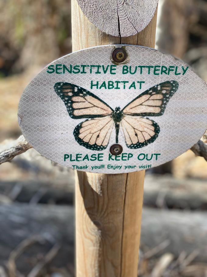 Western Monarchs, with many of the butterflies concentrated in clusters among the branches, in addition to many flying around and sunning themselves in small groups along the numerous trails that lead to a very secluded and clean beachfront.