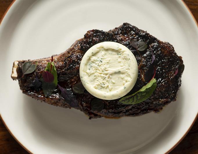 gnocchi, French baguette crostini, saffron aioli, tomato fennel sauce) or Ribeye with smoked pork belly potato hash, charred broccolini and bordelaise.