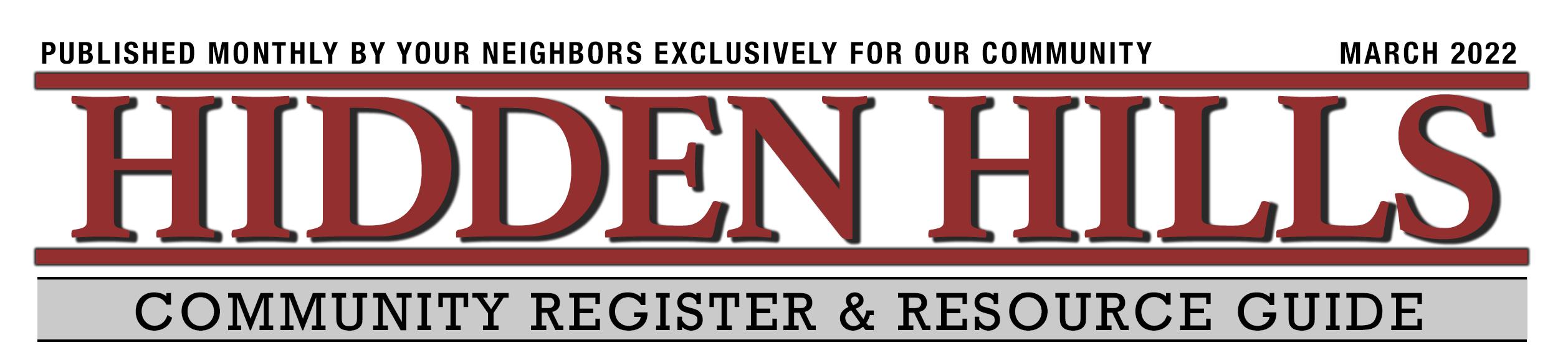 The Hidden Hills Register and Resource Guide is published by long-time friends and residents Lonna Weber and Joe Bellissimo along with the help and involvement of many of our neighbors. Produced each and every month and sent exclusively to Hidden Hills homes, this magazine is dedicated to shining a positive light on the people, issues, events and interests of our community.