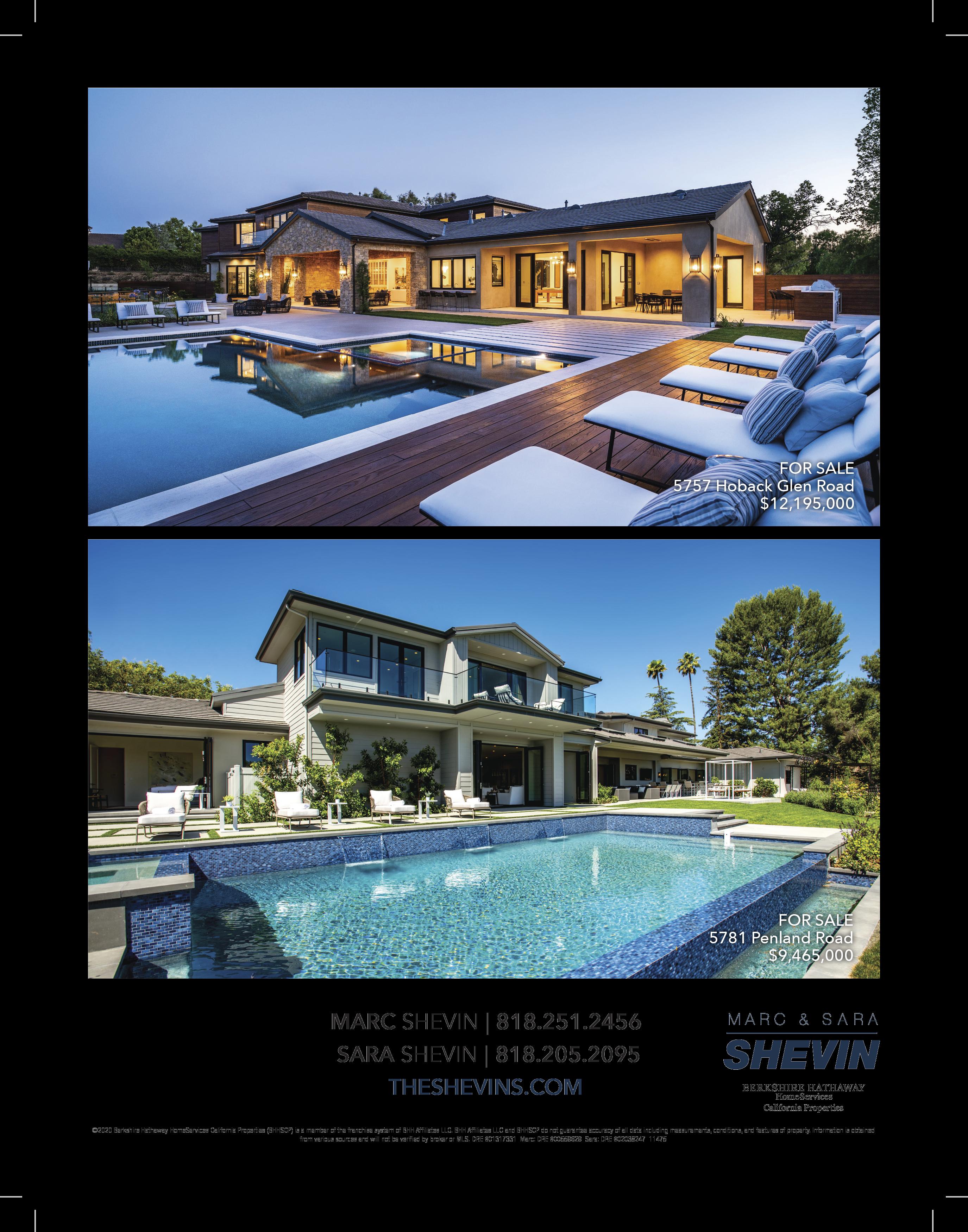 ©2020 Berkshire Hathaway HomeServices California Properties (BHHSCP) is a member of the franchise system of BHH Affiliates LLC. BHH Affiliates LLC and BHHSCP do not guarantee accuracy of all data including measurements, conditions, and features of property. Information is obtained from various sources and will not be verified by broker or MLS. DRE #01317331 Marc: DRE #00559629 Sara: DRE #02038247 11475 MARC SHEVIN | 818.251.2456 SARA SHEVIN | 818.205.2095 THESHEVINS.COM FOR SALE 24760 Long Valley Road $11,995,000 FOR SALE 24314 Rolling View Road $6,195,000