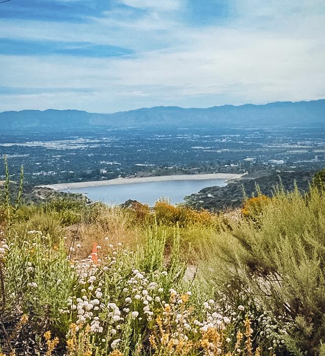 OPPOSITE: HIDDEN HILLS RESIDENT, STEVE WEBER, ON THE TRAIL NEAR EAGLE ROCK. ABOVE: THE VIEW OF LAKE ENCINO, WITH THE SAN FERNANDO VALLEY BEYOND. RIGHT: THE STARTING POINT INTO THE MOUNTAINS, AFTER A SHORT