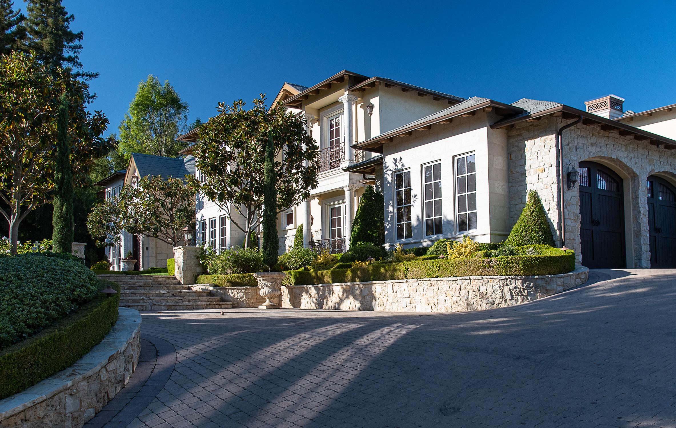 Just completed new construction is The Estate on Dixon Trail. A one of a kind English Regency home sited atop a two Acre promontory within the exclusive guard gated city of Hidden Hills. One of only four estates on Dixon Trail, enter through the rarity of a gated motor court elevating up and around to a double lot providing an unparalleled level of privacy.