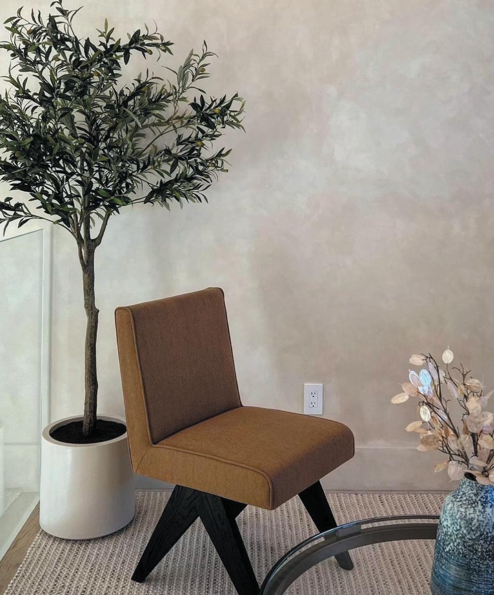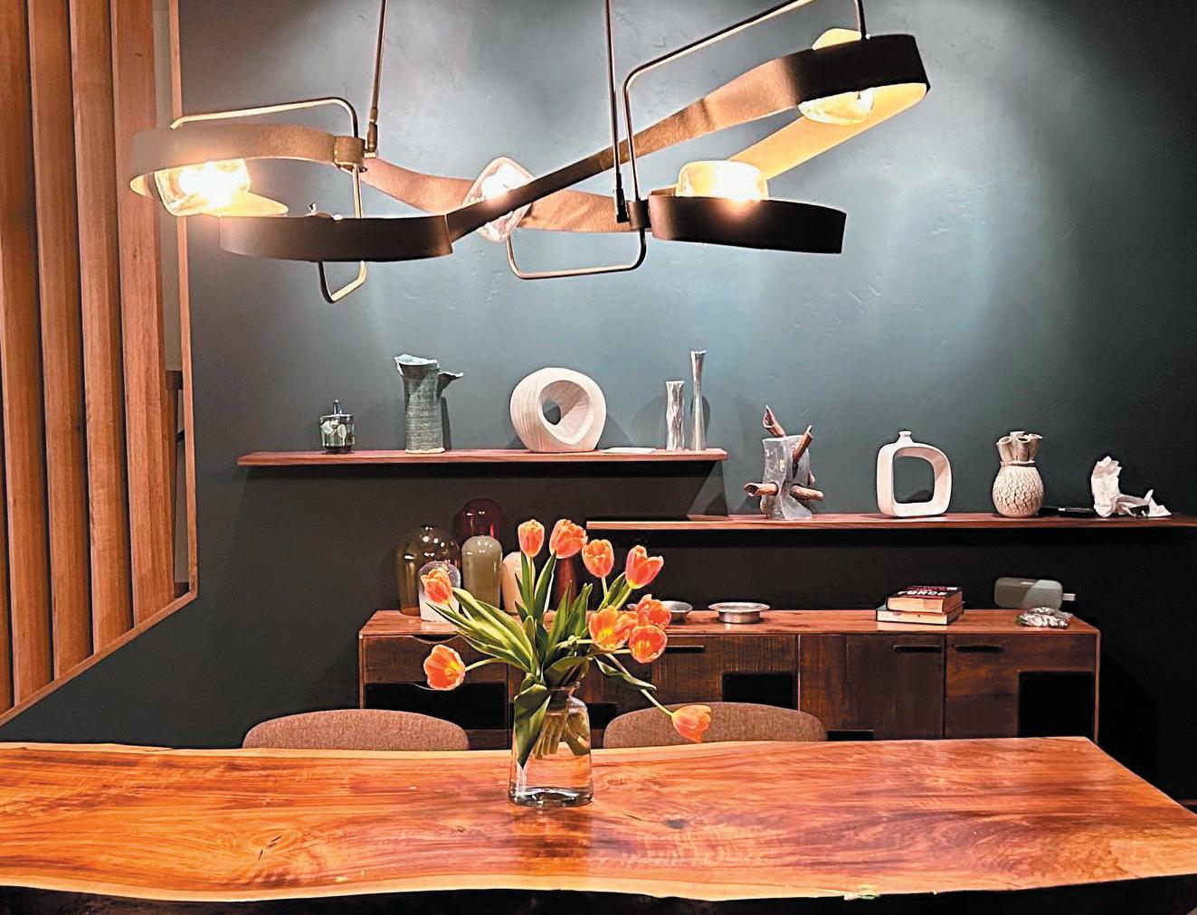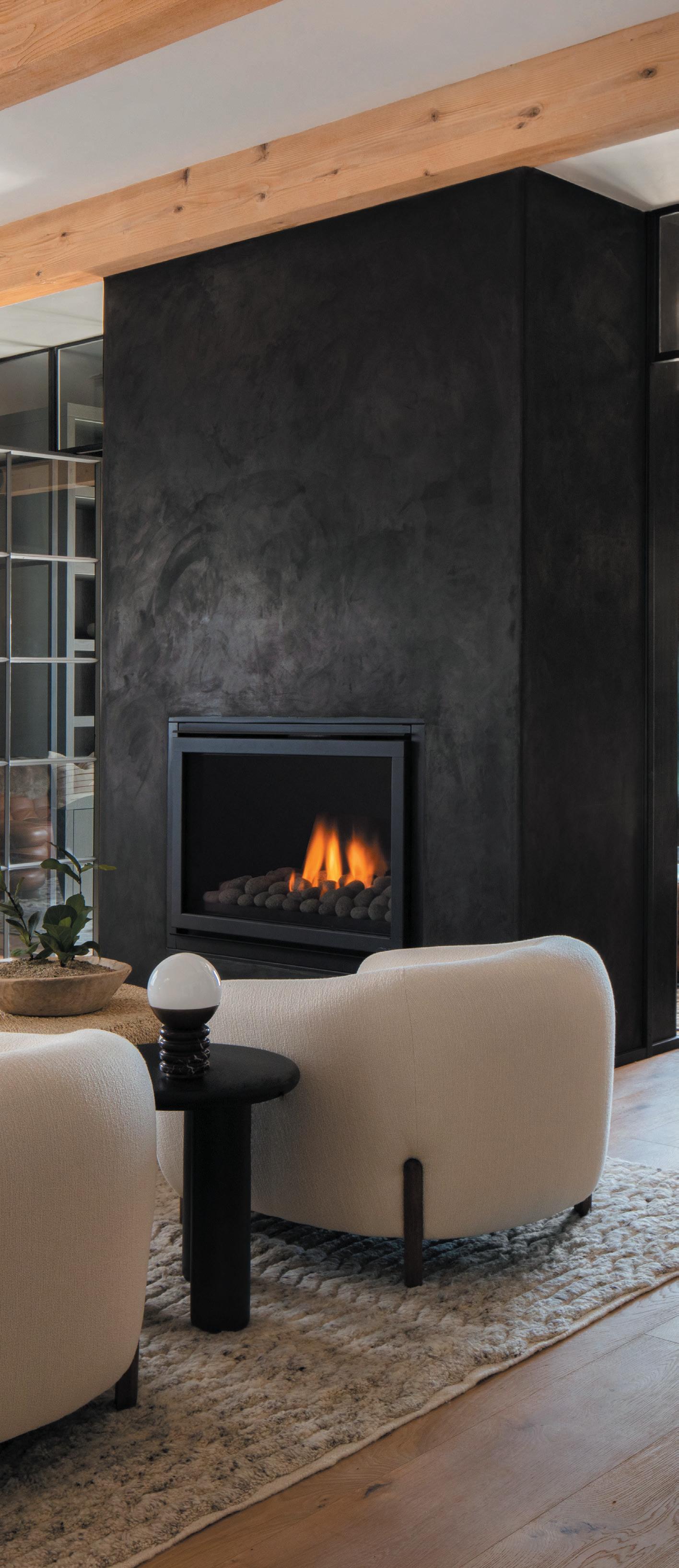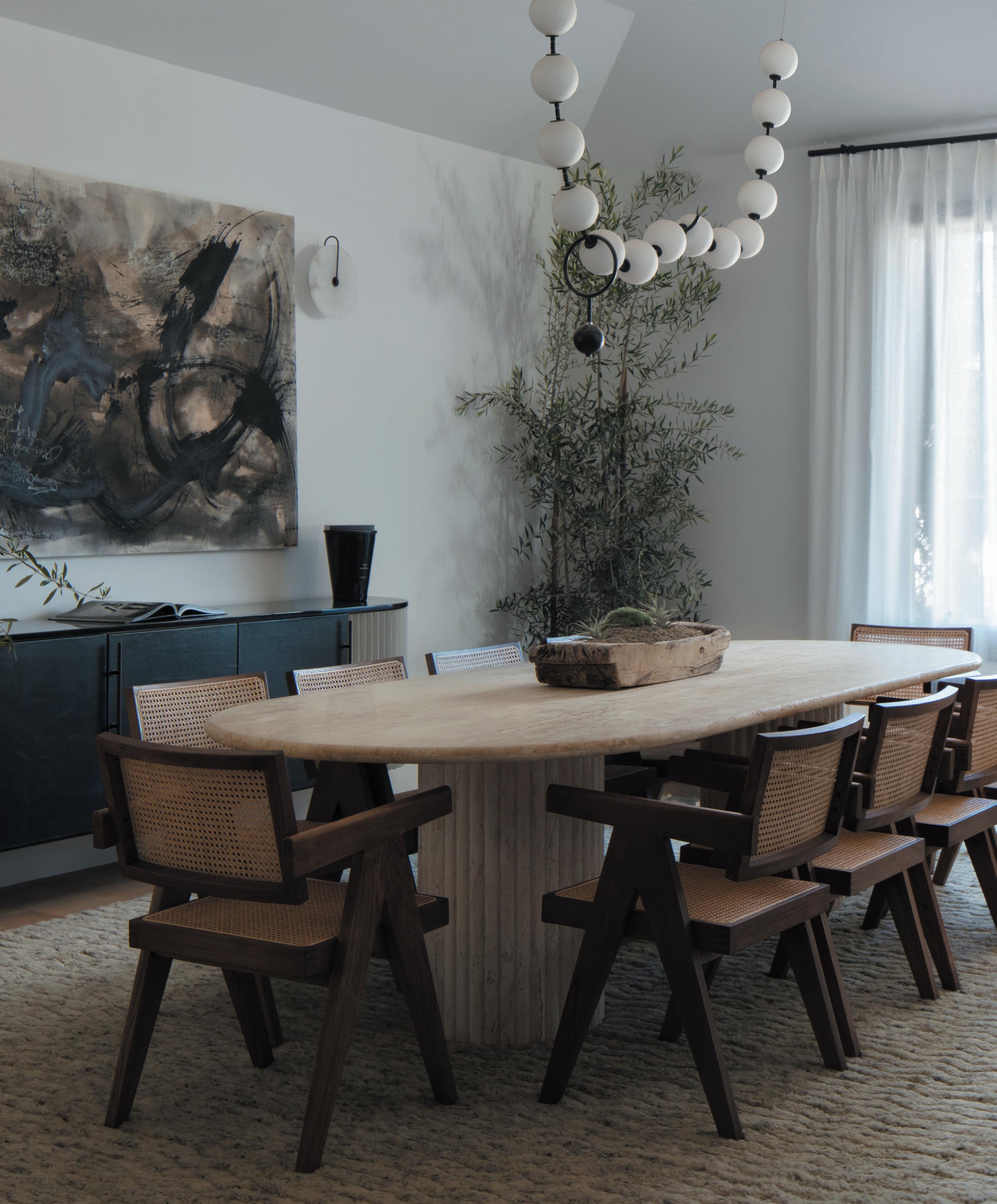 blends re ned European elegance with bold, sleek mid-century modern design. This fusion creates a space that feels both sophisticated and relaxed, balancing classic European details with minimalist, organic mid-century shapes.