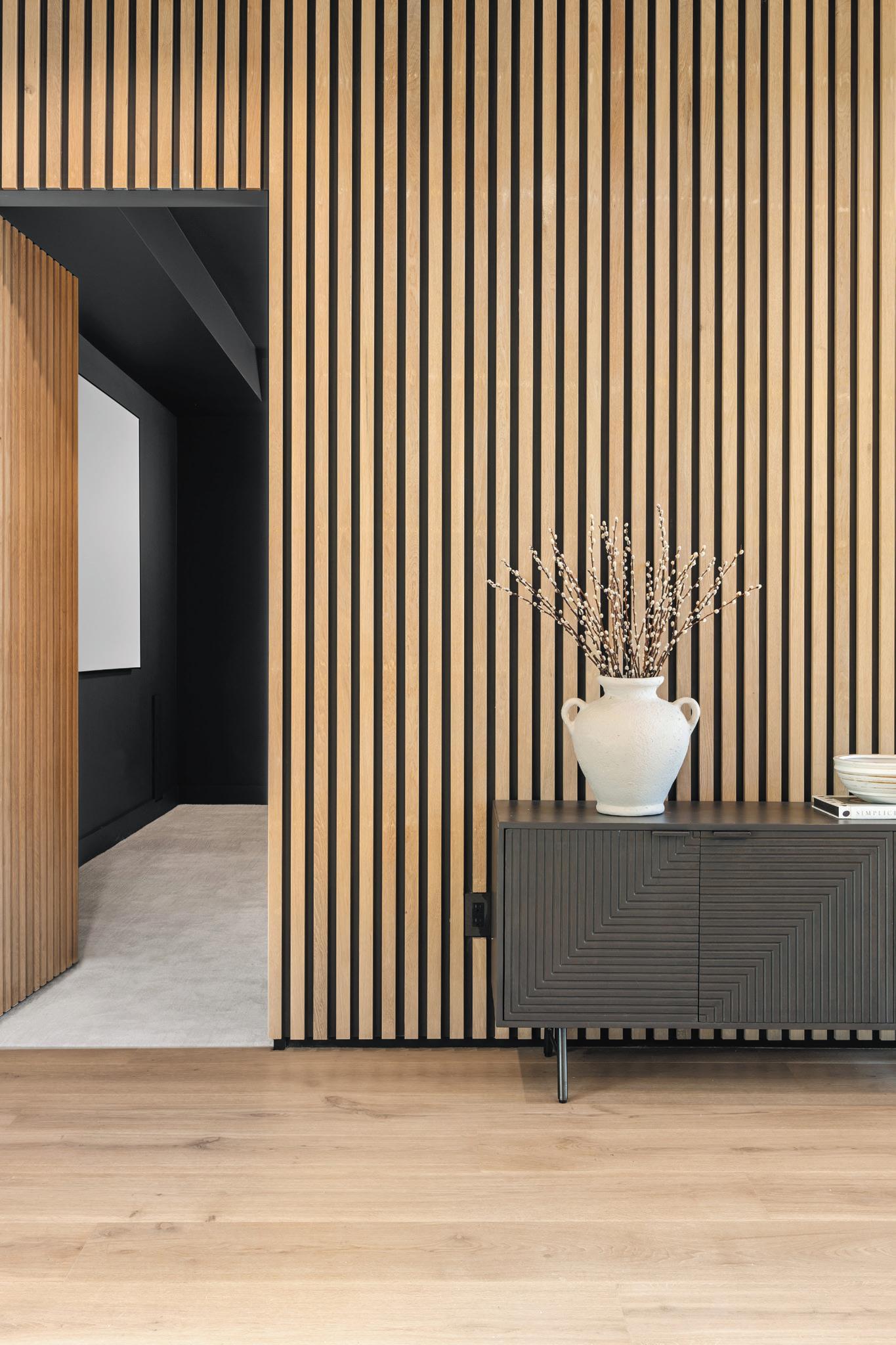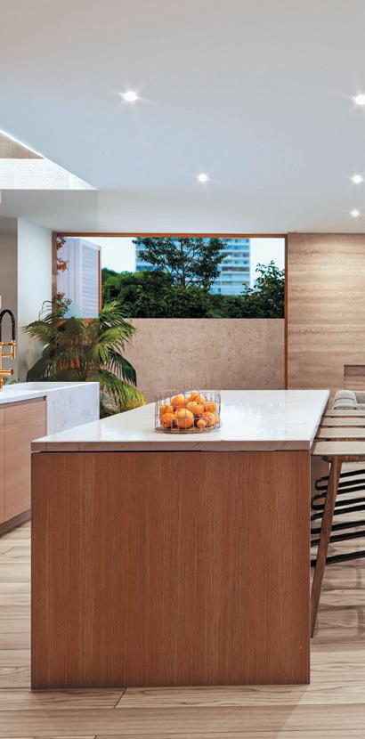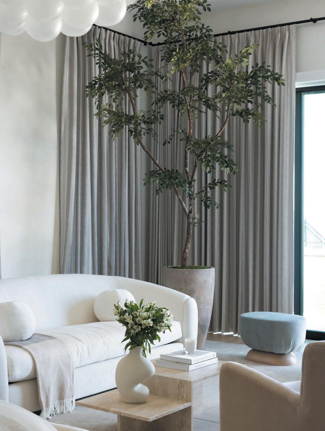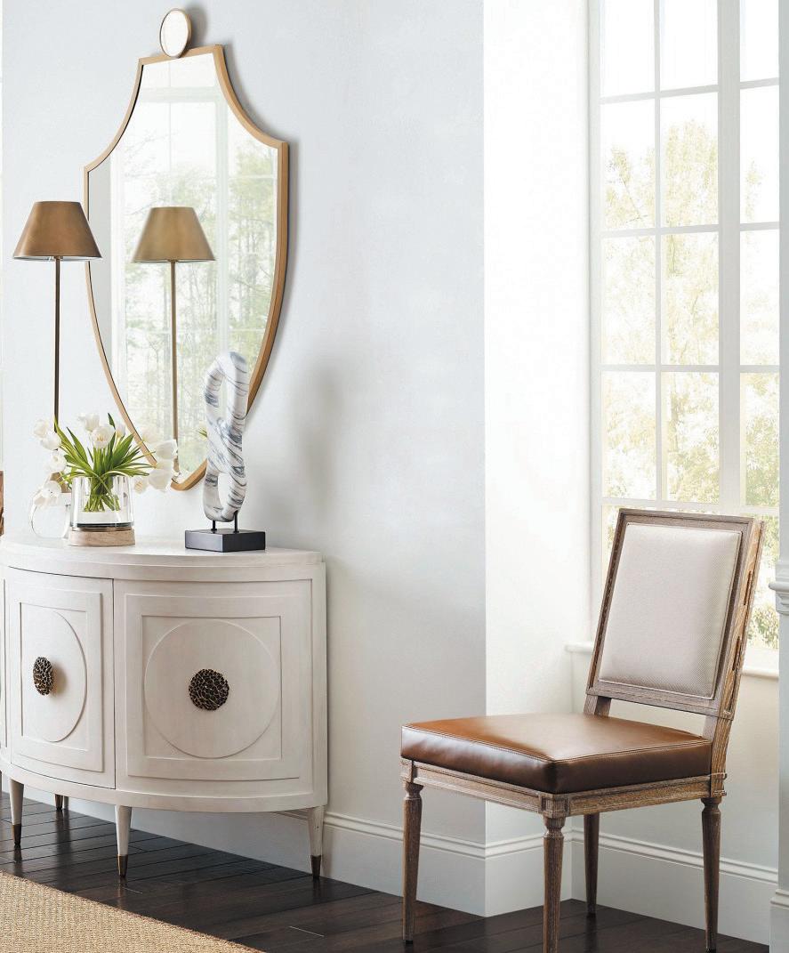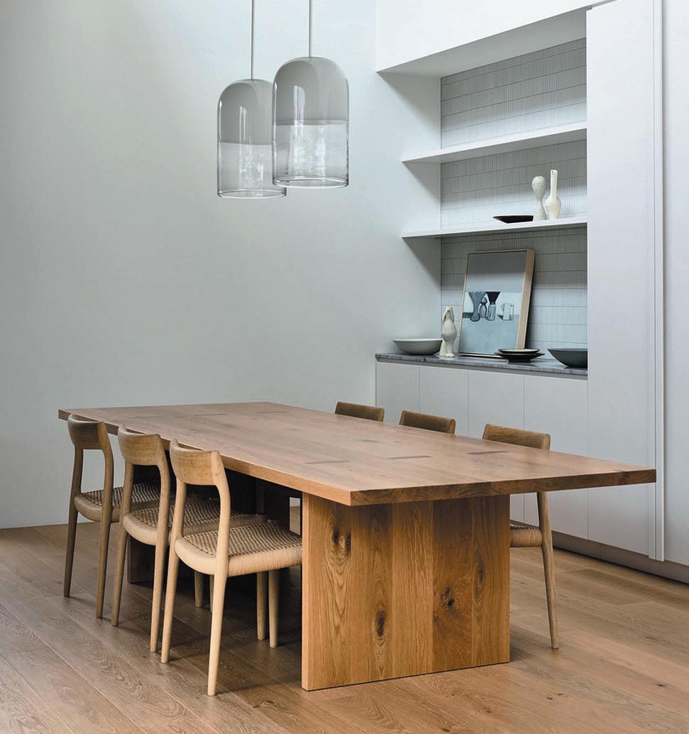 blends re ned European elegance with bold, sleek mid-century modern design. This fusion creates a space that feels both sophisticated and relaxed, balancing classic European details with minimalist, organic mid-century shapes.