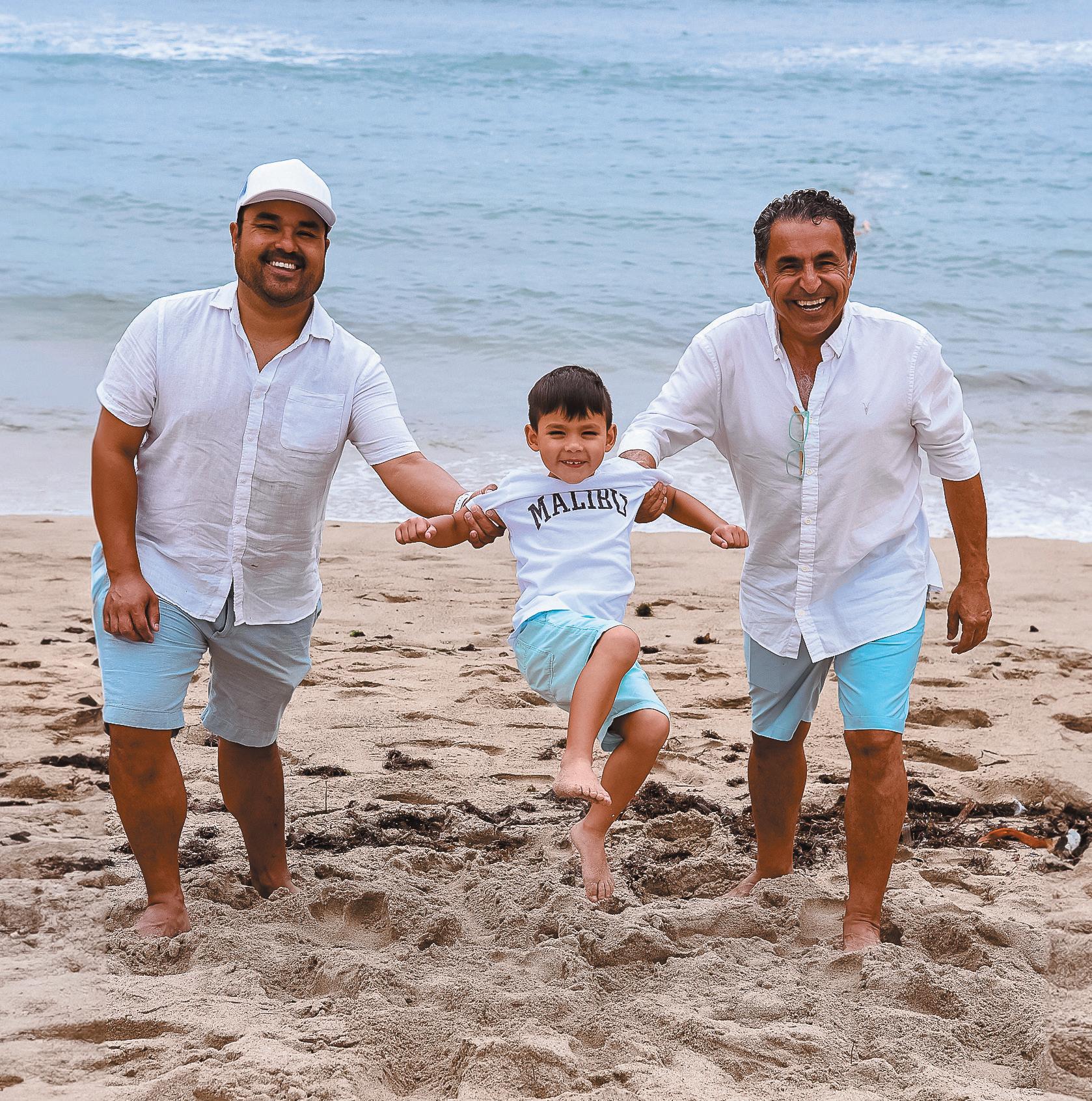 Malibu General Contractor Owners Mehrdad Sahafi (right) and son Mehruz Sahafi (left) with grandson. Photo by Richard Cassel