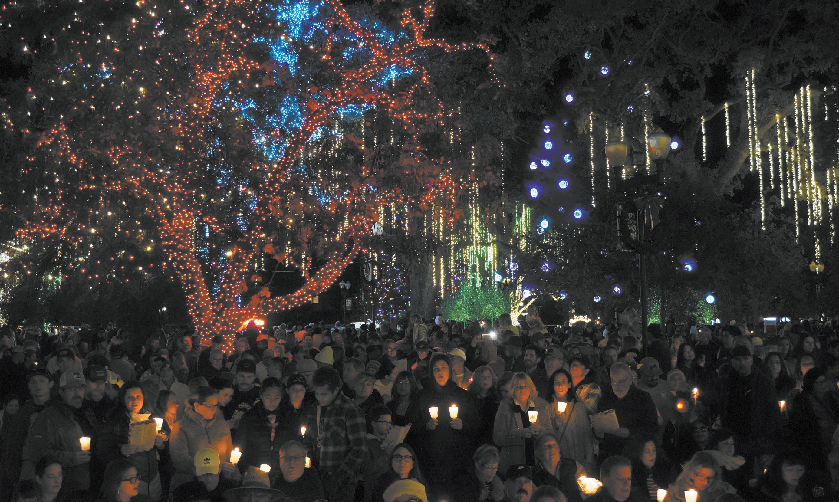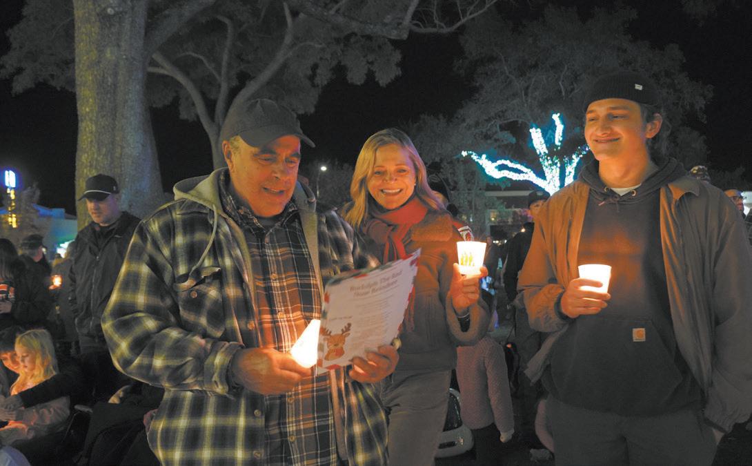 stand. As volunteers distributed candles and songbooks, the crowd began to sing along to traditional holiday carols. At the stroke of 6 p.m., Mrs. Claus flipped the giant switch, and the Paso Robles City Park was instantly transformed.